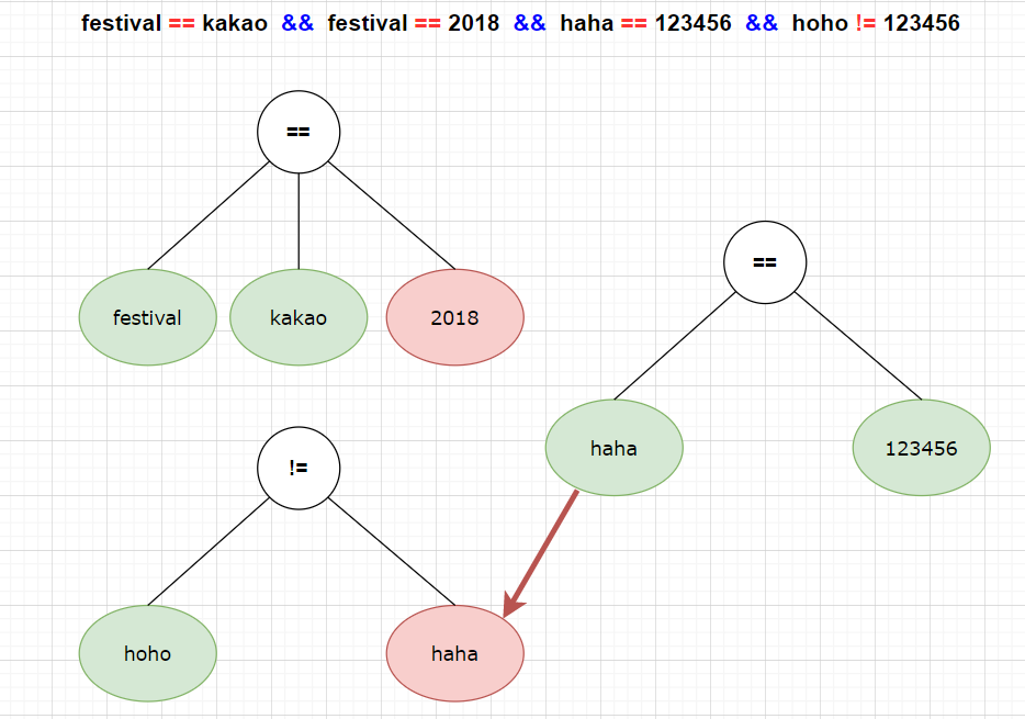 festival==kakao&&festival==2018&&haha==123456&&hoho!=123456