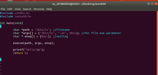 이 이유는 실행가능한 파일인 path의 실행코드를 현재 프로세스에 적재하고, 기존의 실행코드와 교체하여 새로운 프로그램으로 실행을 하기 때문에 현재 실행되는 프로그램의 기능(printf”hello!”와 같은) 기능들은 없어지고 path의 프로그램을 메모리에 로딩하여 처음부터 실행하기 때문이다.